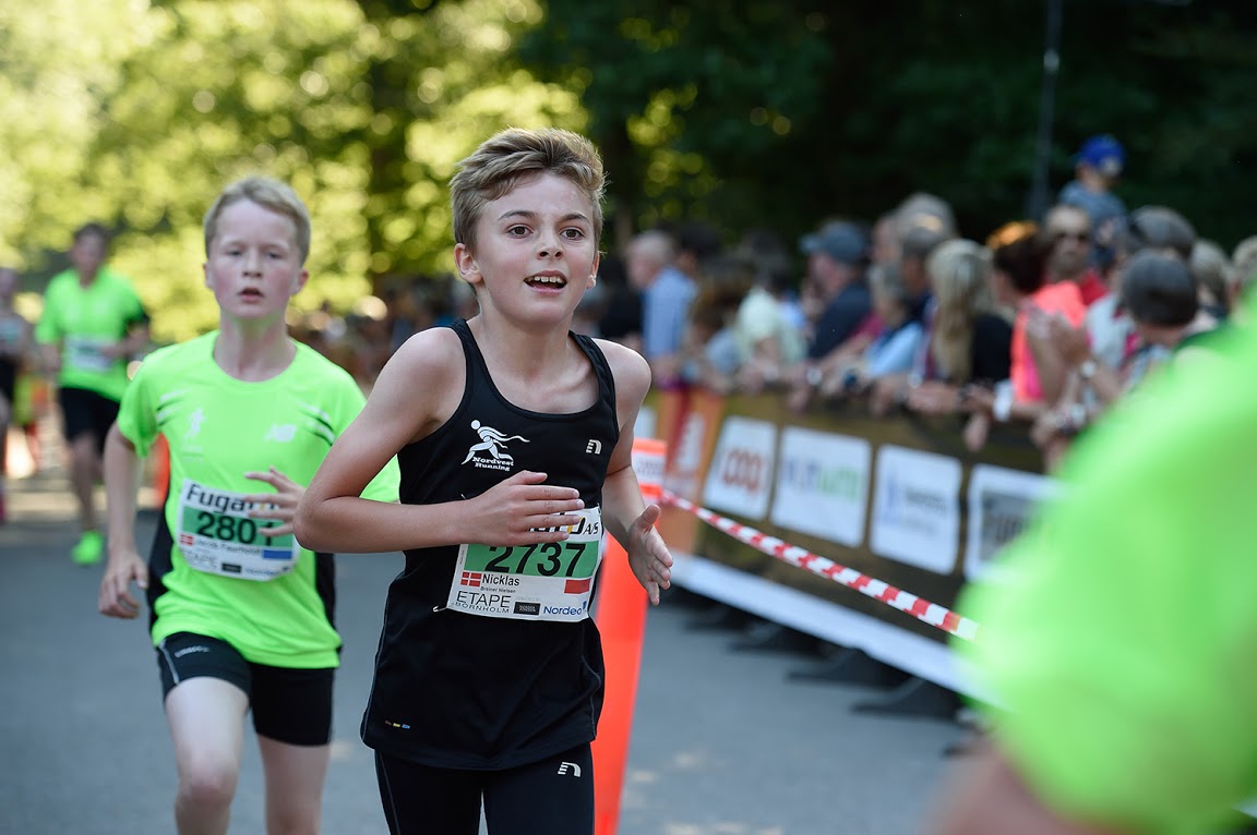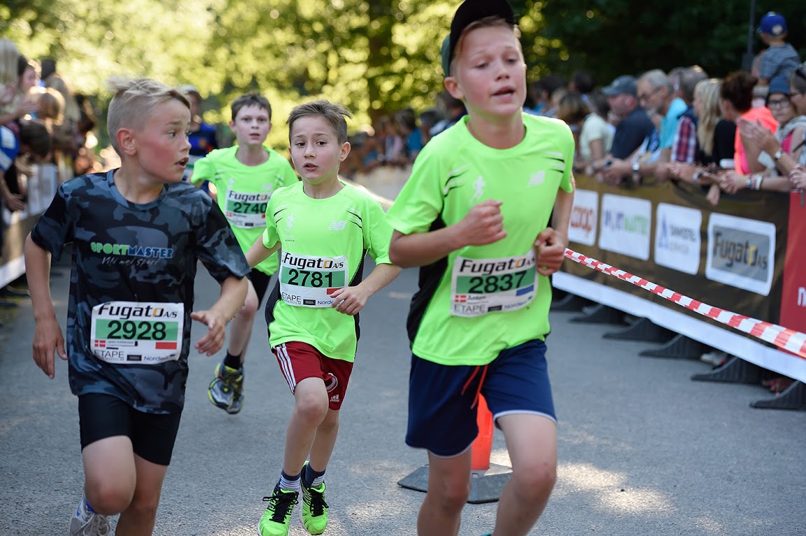 Børn indtil 14 år starter umiddelbart efter (1. etape kl. 18:07, 2. etape kl. 18.10, 3. etape kl. 18:22.) Børnene løber mandag, onsdag og fredag.